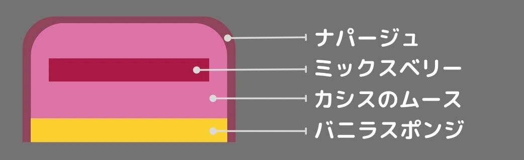 原材料:生クリーム、牛乳、卵、カシスピュレ、砂糖、MIXベリー、ゼラチン、バター、薄力粉